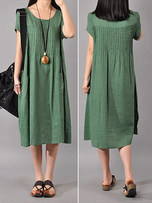 Locker sitzendes Kleid aus Baumwollleinen für Damen in Grün