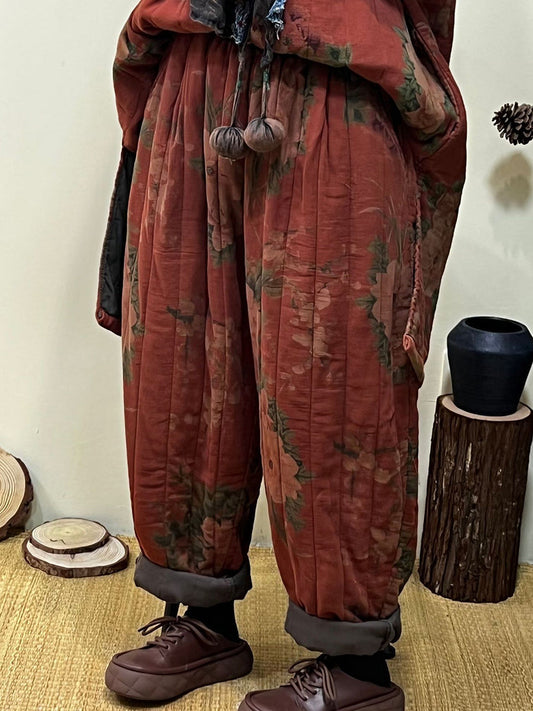 Übergröße - Herbstliche Vintage-Haremshose mit Blumenmuster